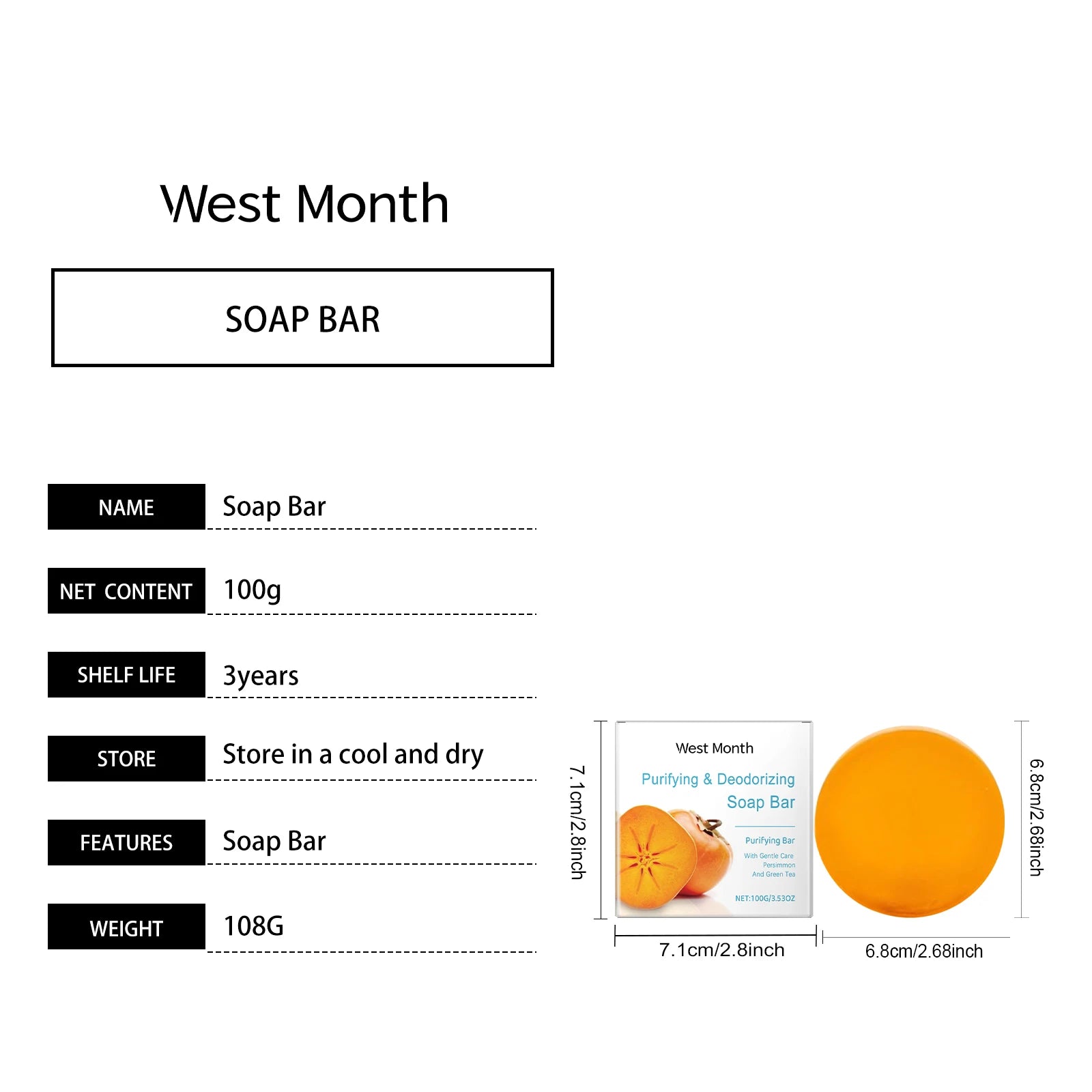 ✅ Main Ingredients: Persimmon Extract, Moisturizing Agents ✅ Functions: Cleansing, Freshening, Moisturizing, Deodorizing ✅ Texture: Creamy Lather, Smooth Finish ✅ Skin Type: All Skin Types (Including Sensitive) ✅ Scent: Natural Persimmon Freshness ✅ Use: Daily Bath and Body Cleansing ✅ Weight: Standard Bar Size (Varies by Batch) ✅ Feature: Gentle, Hydrating, Refreshing ✅ Ideal For: Men, Women, Teens, Family Use