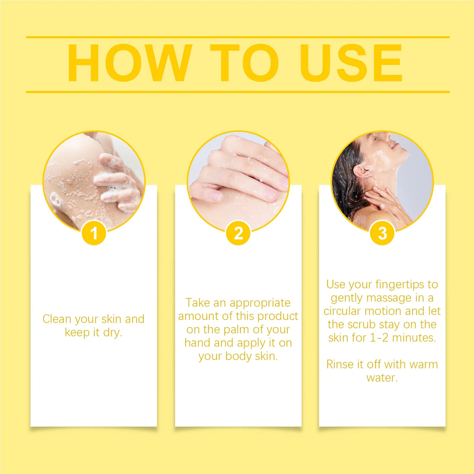 ✨ Dual-Action Exfoliation The scrub features a gentle yet effective texture that removes dead skin cells, dirt, and buildup from the surface. This exfoliating action helps unclog pores, improve circulation, and promote smoother, softer skin. Ideal for rough areas like elbows, knees, arms, and back.