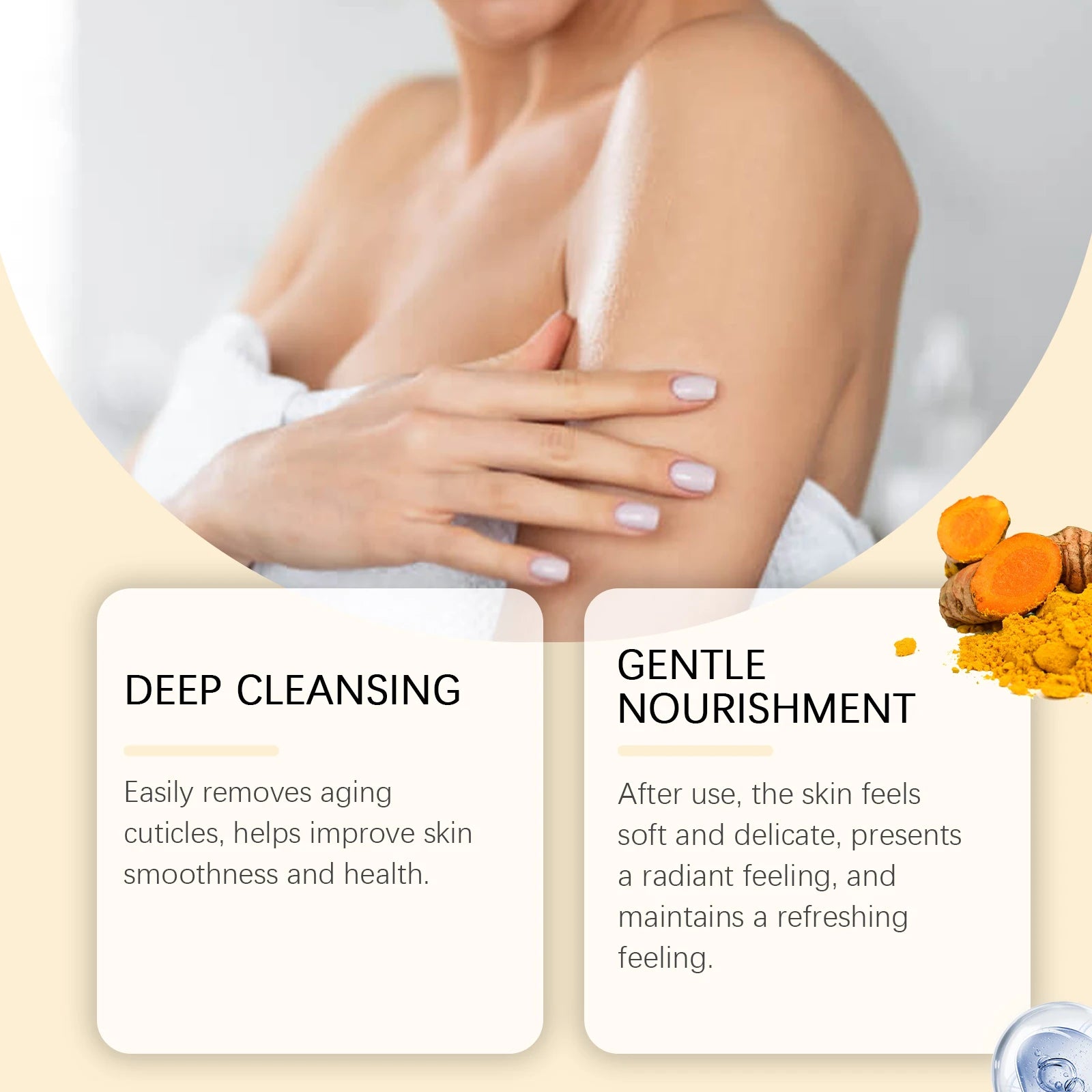 ✅ Main Ingredients: Sea Salt, Turmeric Extract, Moisturizing Agents ✅ Benefits: Exfoliating, Brightening, Moisturizing, Pore-Cleansing ✅ Skin Concerns: Dark Spots, Body Acne, Rough Texture, Dullness ✅ Texture: Fine Grain Scrub ✅ Use Areas: Arms, Legs, Back, Neck, Elbows, Knees ✅ Application: 2–3 Times Weekly ✅ Skin Type: All Skin Types ✅ Feature: Natural Brightening + Deep Exfoliation ✅ Scent: Mild Herbal Turmeric Aroma ✅ Result: Smoother, Softer, More Radiant Skin