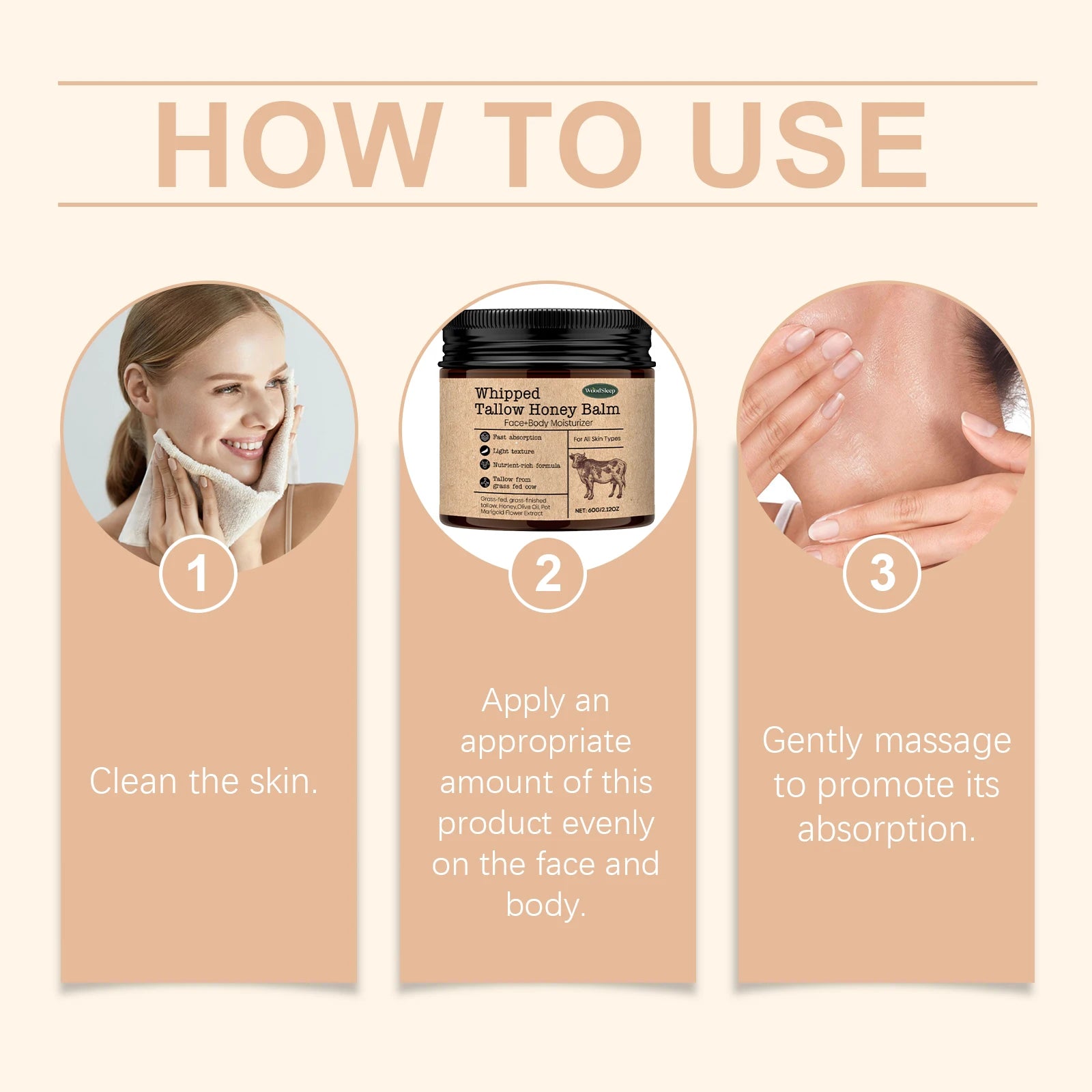 ⭐ Key Features 💠 Grass-fed beef tallow for deep skin nourishment 💠 Honey infusion for moisture retention 💠 Whipped, creamy texture for easy absorption 💠 Ideal for winter dryness and sensitive skin 💠 Suitable for face and body moisturization