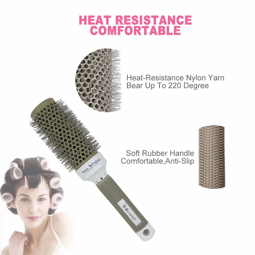 Achieve smooth, voluminous, salon-quality hair with the Thermal Ceramic Ionic Round Hair Brush, available in six professional sizes for every styling need. Designed for drying, curling, straightening, and adding lift, this brush combines advanced materials with precision performance—perfect for both home use and professional salons.