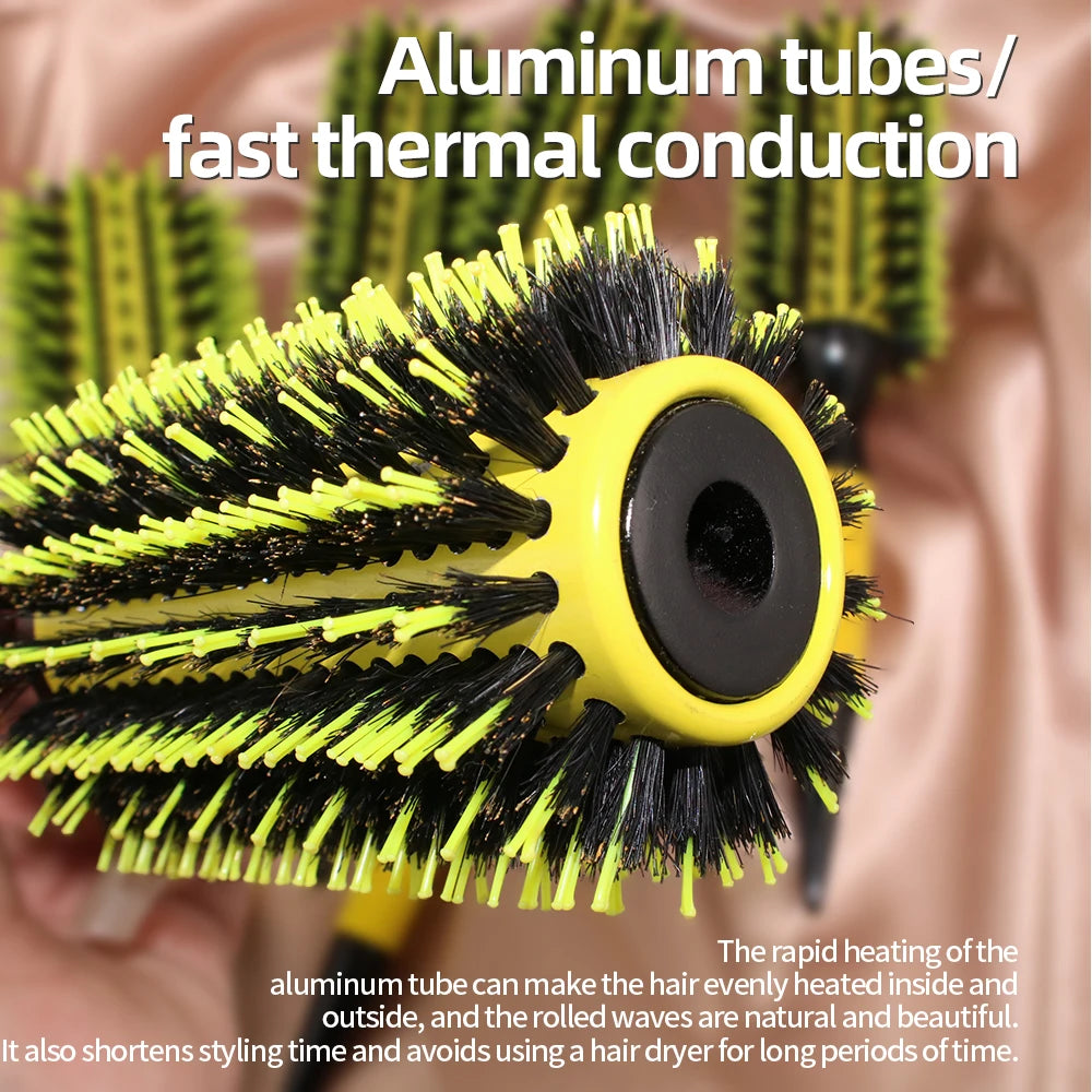 ✨ Boar + Nylon Bristles The unique blend of boar bristles and nylon bristles offers the perfect balance of grip and smoothness. Boar bristles distribute natural oils from root to tip, boosting shine and reducing frizz, while nylon bristles provide gentle tension to shape curls and waves easily. This dual-bristle system works beautifully for taming flyaways, polishing the cuticle, and giving hair a sleek, healthy finish.