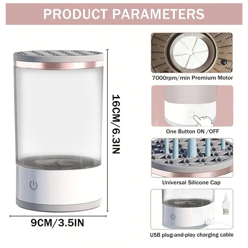 Keep your makeup routine hygienic and hassle-free with the Automatic USB Electric Makeup Brush Cleaner and Dryer Machine. Using powerful spinning technology, this device removes makeup residue, excess oil, dust, and impurities that build up in brush bristles over time. The deep-cleansing motion reaches into the core of each brush, ensuring a spotless, fresh tool every time you apply makeup. Perfect for beauty enthusiasts, professionals, and anyone who wants cleaner, healthier skin.