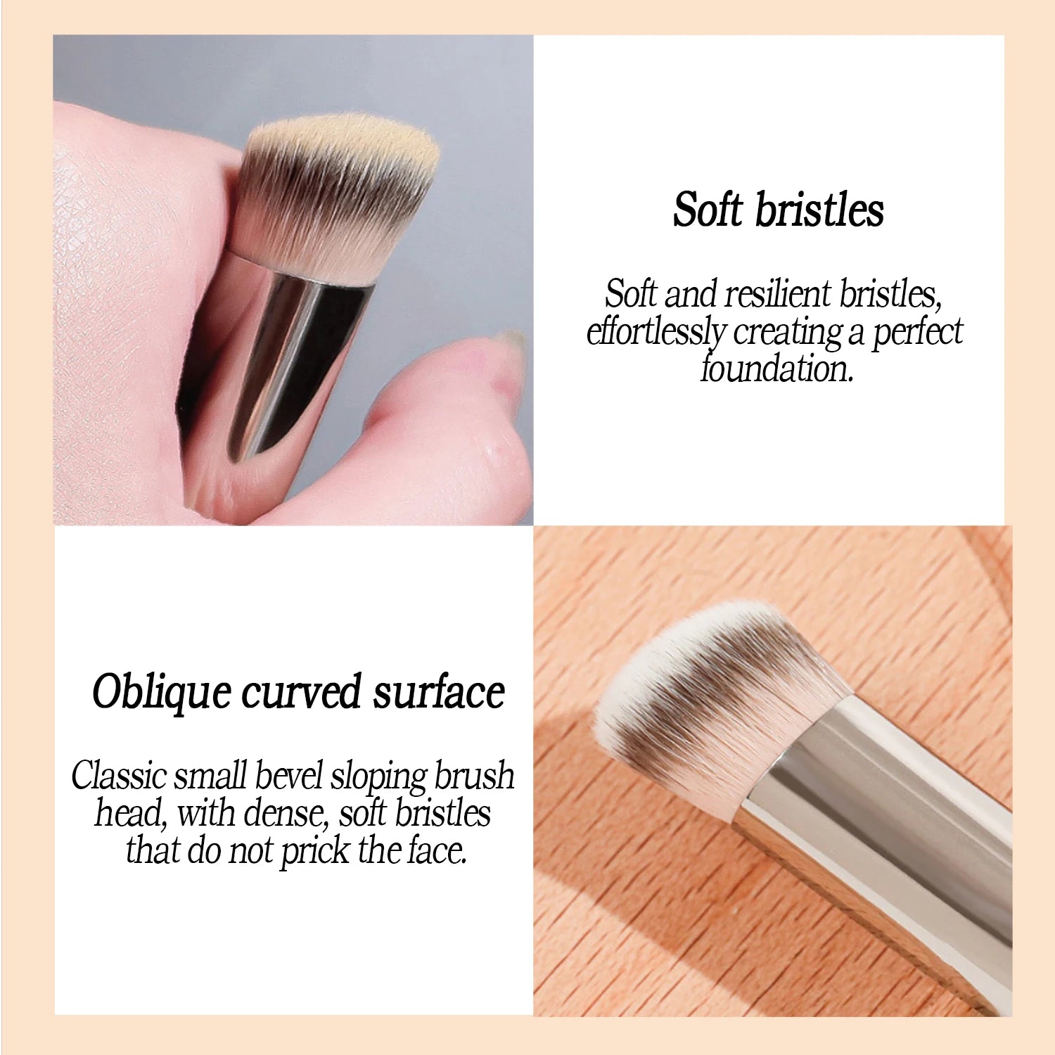 The uniquely shaped flat head is engineered to fit the contours of the under-eye area, nose sides, and delicate facial folds. It provides superior control, allowing you to apply product exactly where you need it—minimizing waste while maximizing results. The tapered edges allow for gentle blending near the lower lash line, inner corners, and nose bridge, offering the flexibility to conceal, highlight, or correct with ease.