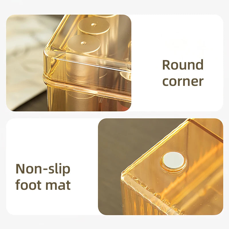 💄 Desktop Essential ✨ The sleek design makes it a perfect addition to vanity tables, makeup desks, dressing rooms, or salons. Its stylish acrylic construction adds a modern, luxurious touch to any beauty space while keeping your essentials within reach.